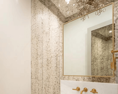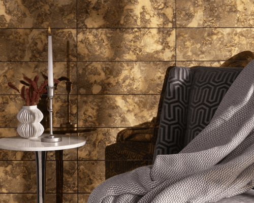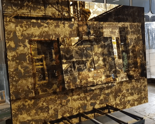 زجاج المرايا العتيق ليس من التحف التقليدية. إنه زجاج مرآة زخرفي رائج عالمياً تمت معالجته بعملية أكسدة خاصة — مما أدى إلى ظهور أنماط عضوية تبدو قديمة باللون الفضي والذهبي والبرونزي والرمادي والأخضر والأزرق وغيرها.