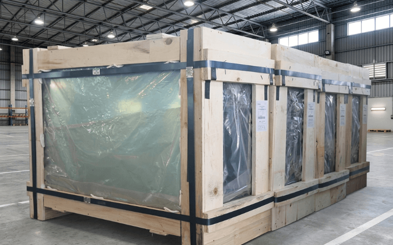 يتم وضع طبقة واقية بين كل لوح من ألواح المرايا وتعبئتها في صناديق خشبية صالحة للنقل البحري. نقدم خدمات الشحن البحري والشحن الجوي والشحن السريع — إلى الموانئ والأبواب في جميع أنحاء العالم. تتوفر مستندات الشحن وخدمة تتبع الشحنة.